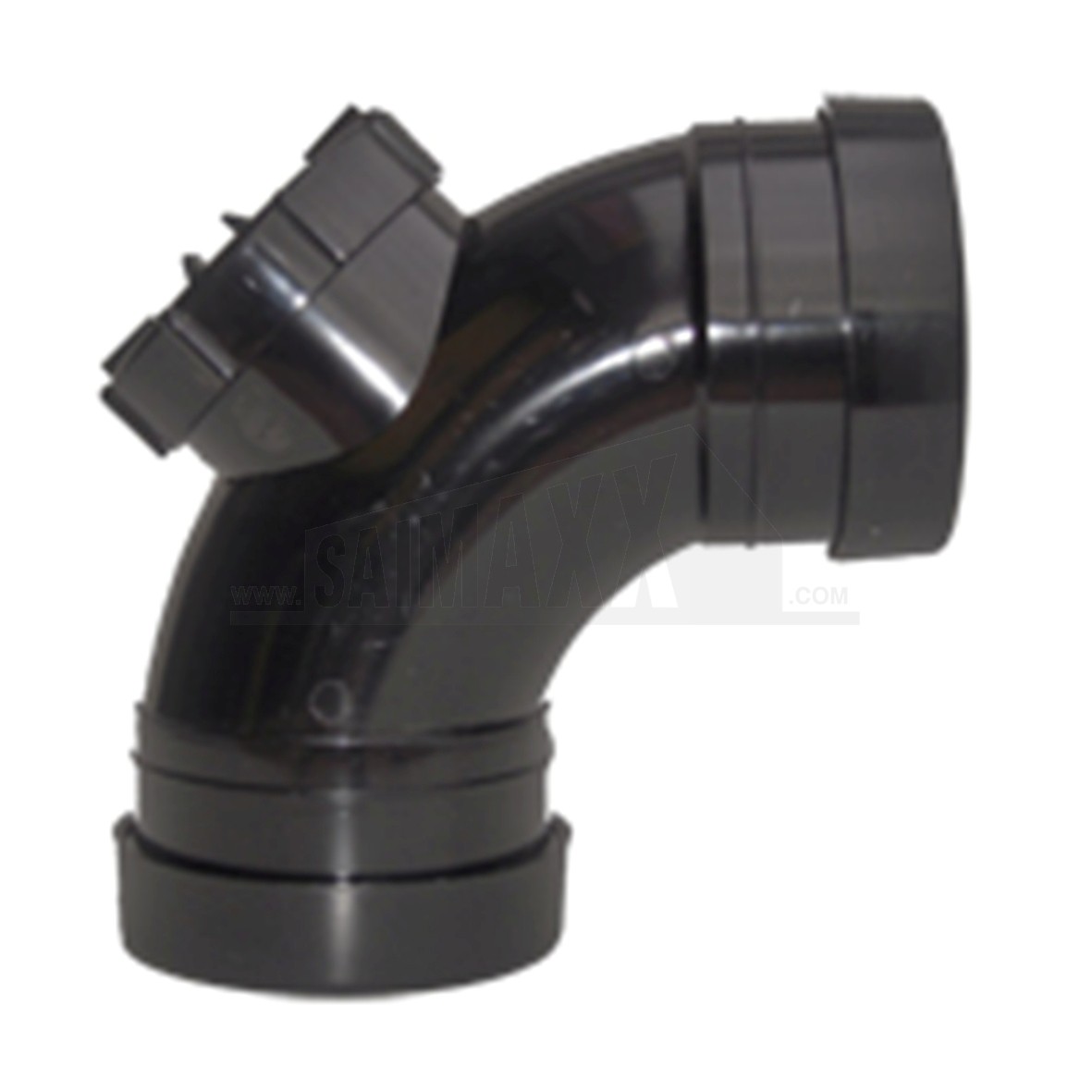 A 110mm solvent black 92.5 degree access bend with double socket connections changes direction in a soil or waste run while providing an access point for maintenance. It suits solvent-weld above-ground drainage installations.