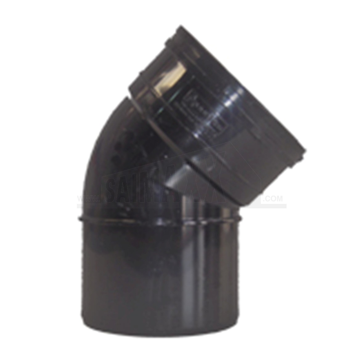 A 110mm solvent weld black 45 degree bend with a single socket is designed to alter the direction of soil and waste pipework. It suits 110mm above-ground drainage runs where a solvent-weld joint is required.