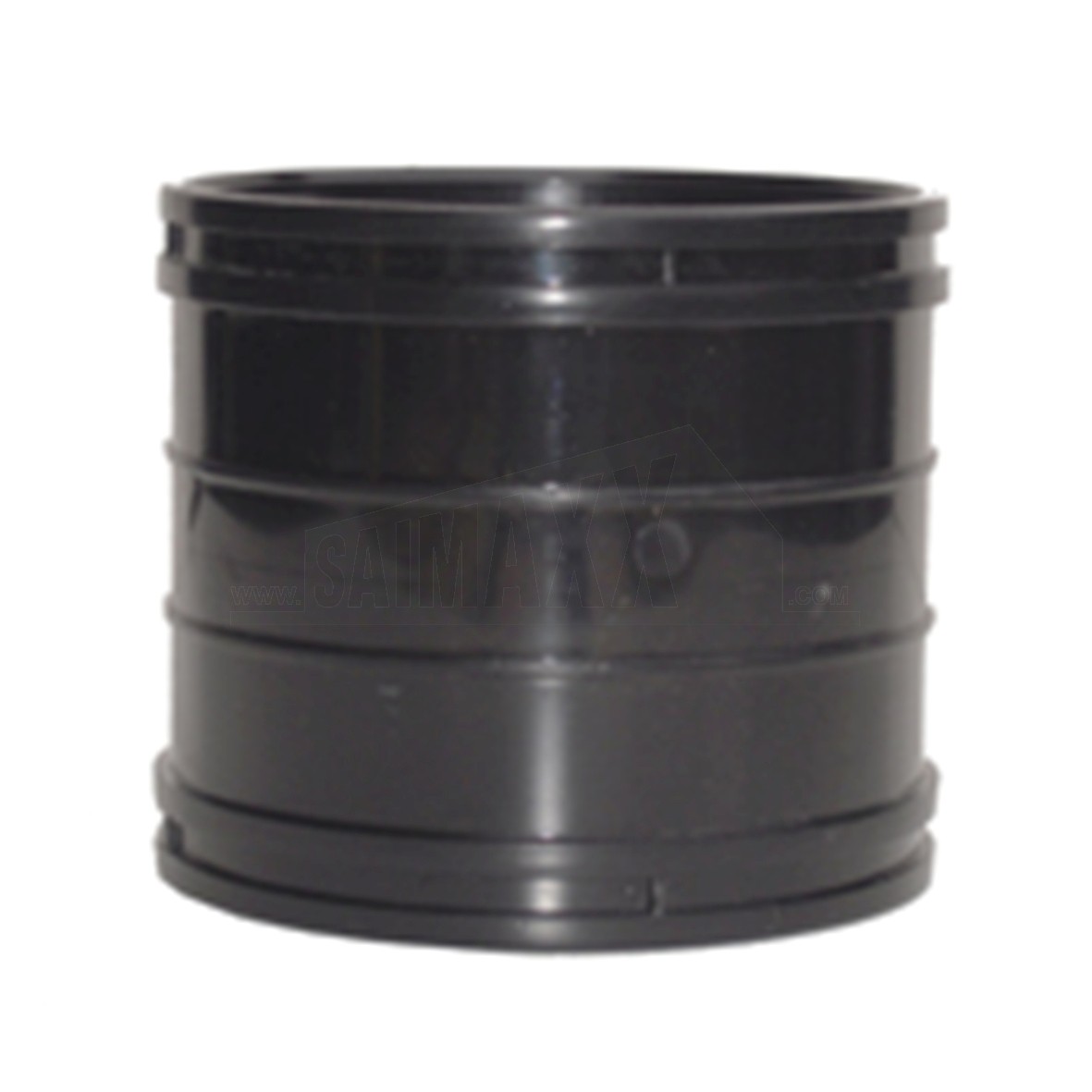 A 110mm solvent black coupling straight joint is made for joining two lengths of 110mm soil pipe in a straight line. It provides a solvent-weld connection for extending or repairing black soil drainage runs.