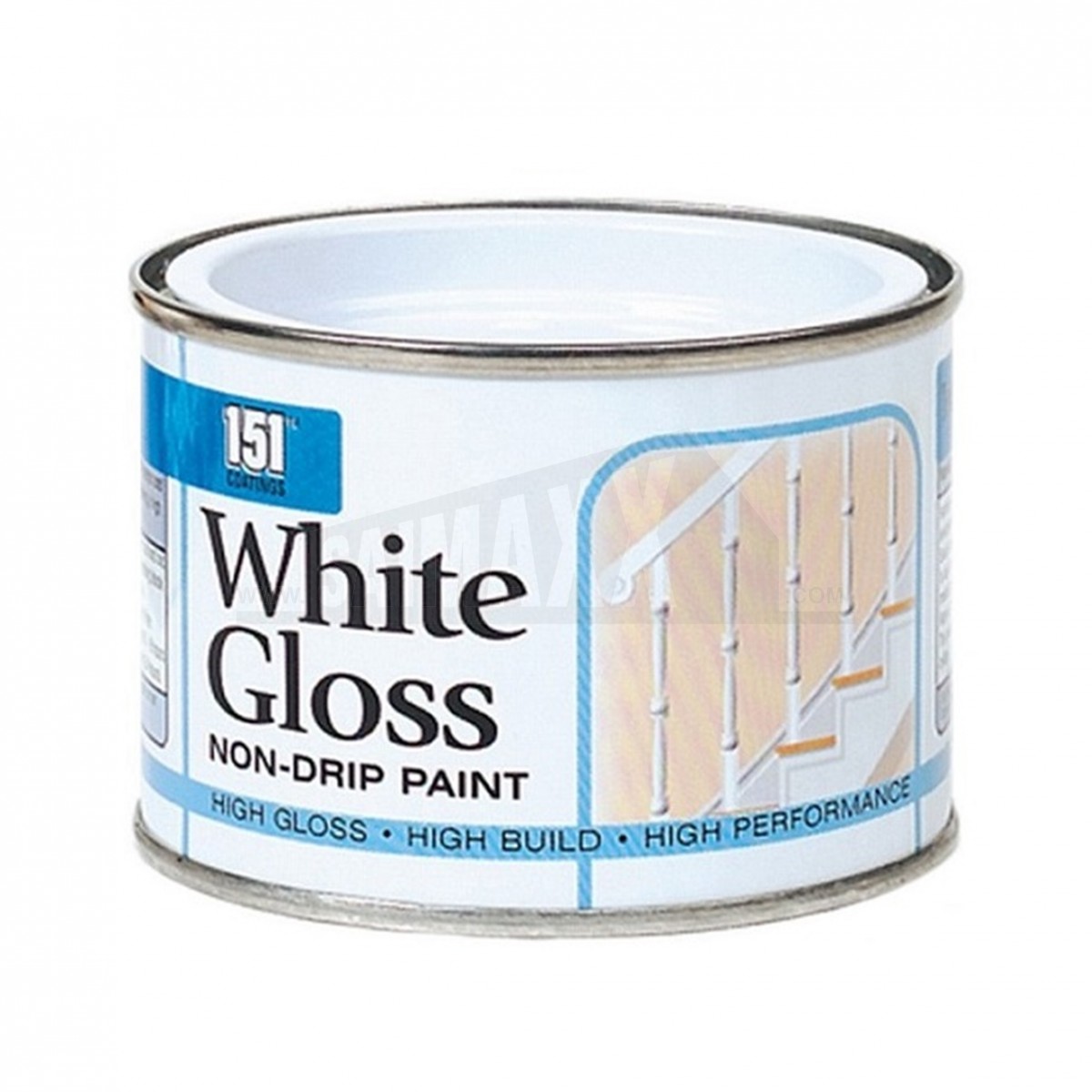 The 151 Non Drip Gloss Paint White 180ml is a small tin of white gloss paint formulated to reduce runs and drips during application. It provides a smooth, durable finish for interior or exterior touch-up work on wood and metal surfaces.