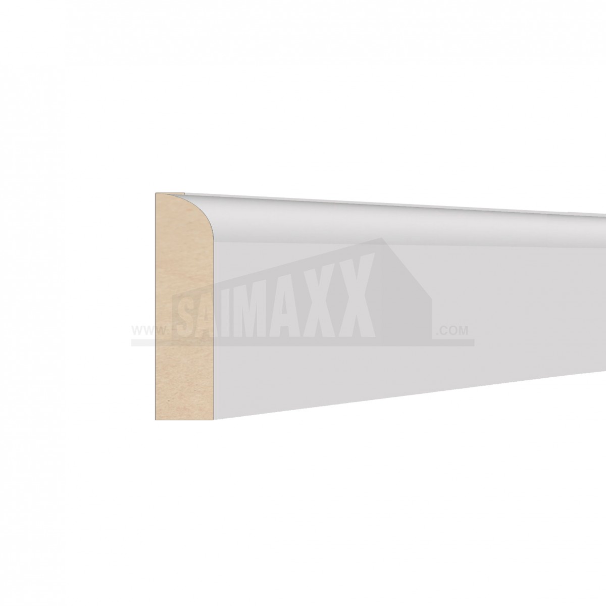 A 18 x 68mm bullnose skirting and architrave in white primed MDF, supplied in a 4.2m length per piece. It provides a smooth decorative trim around floors, doors and frames ready for finishing.
