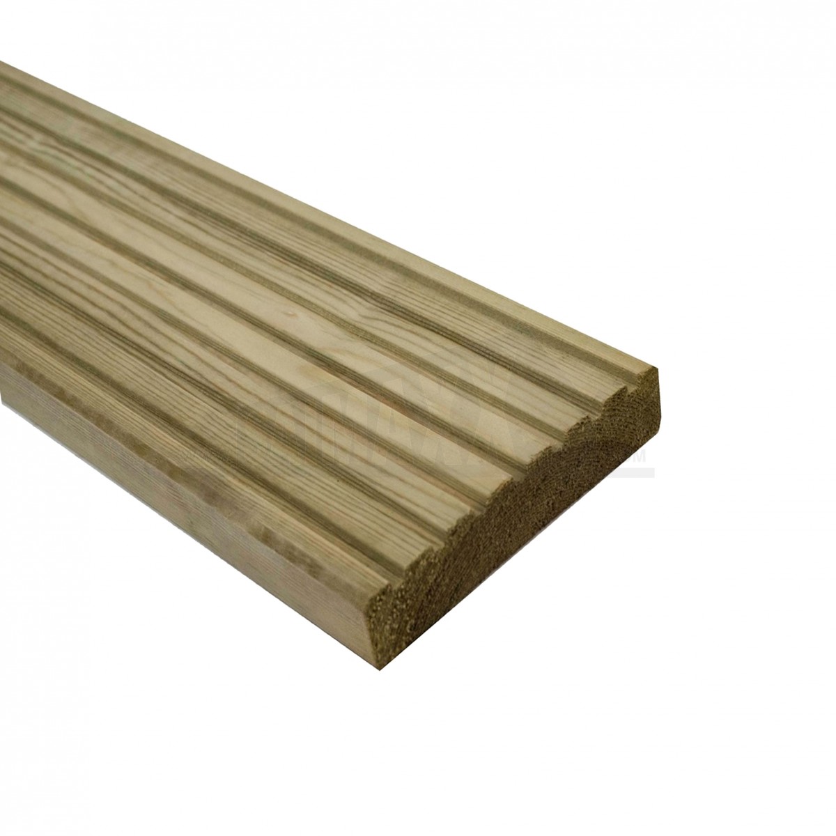 A 32 x 150 x 3600mm nominal softwood treated timber garden decking board is designed to form durable decked surfaces in outdoor spaces. It provides a solid walking surface for patios, garden seating areas and raised decks.