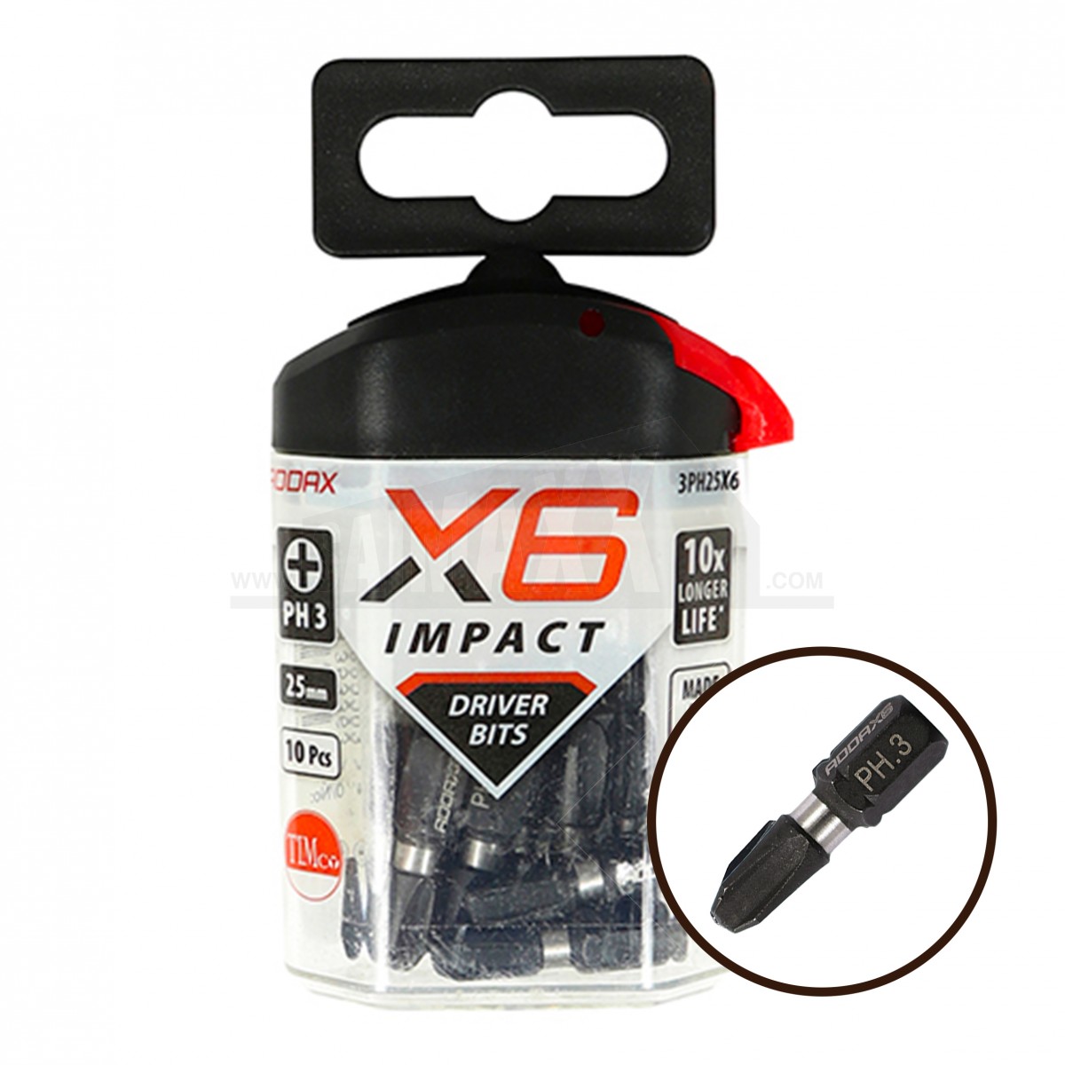 The Addax X6 Impact Duty Screwdriver Bits PH3 25mm 10pc are Phillips No.3 impact-rated bits designed for driving larger PH3 screws with power tools. They are suited to demanding fixing work where a strong, accurate bit fit is needed.