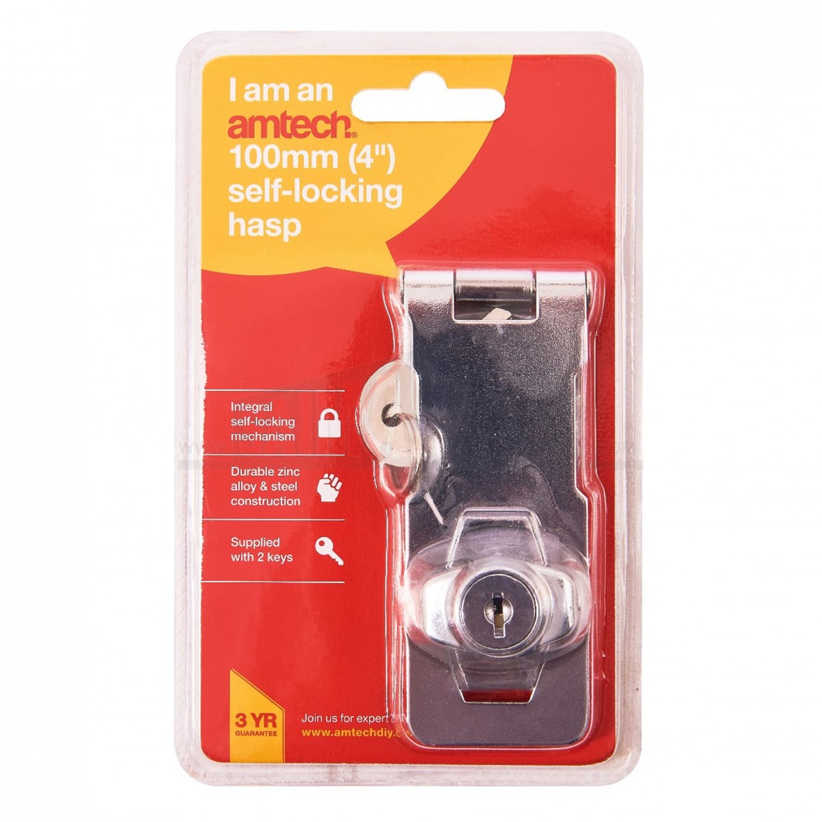 The Amtech 100mm 4in Self Locking Hasp is a security fastening for securing doors, gates, sheds and boxes. It self locks when closed to help keep the fitting fastened without needing separate manual latching.