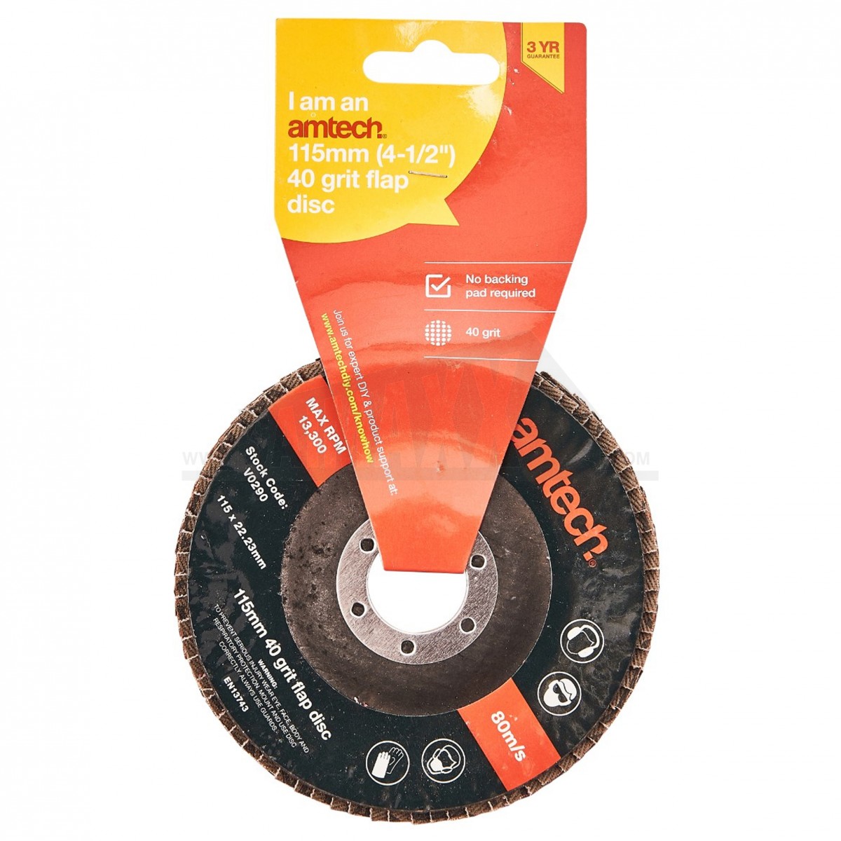 Amtech 115mm (4.1/2") 40 Grit Flap Disc (Fits 4.1/2" Angle Grinders)