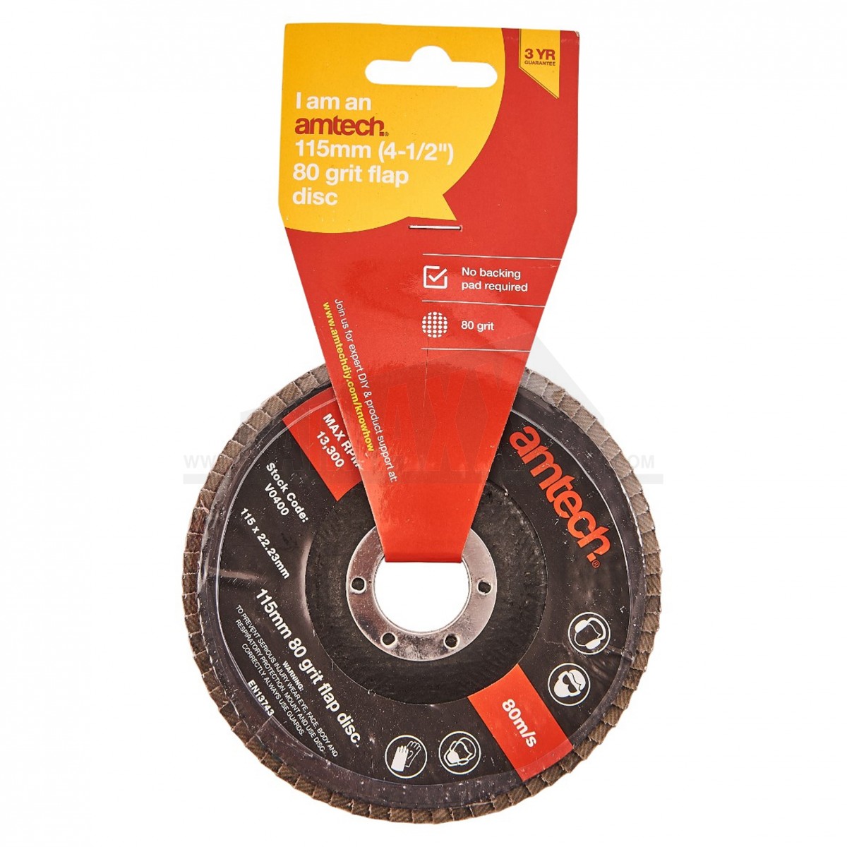 Amtech 115mm (4.1/2") 80 Grit Flap Disc (Fits 4.1/2" Angle Grinders)