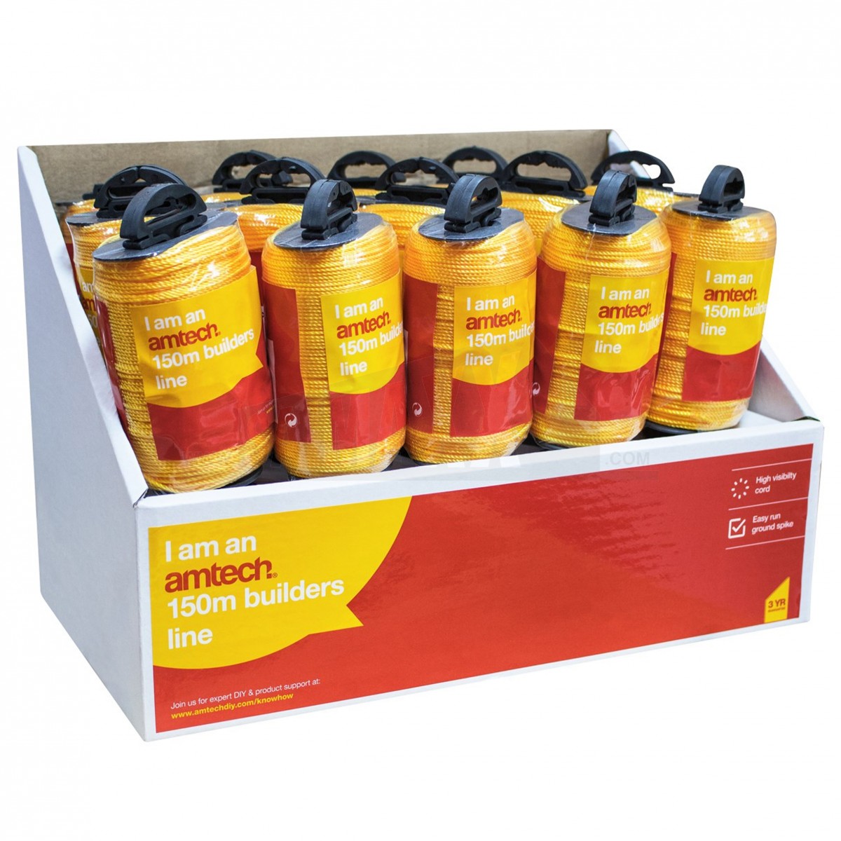 The Amtech 150m Builders Line is a long-length string line for setting out and keeping brickwork, paving and other site work straight. It provides a visible guide line over extended runs.
