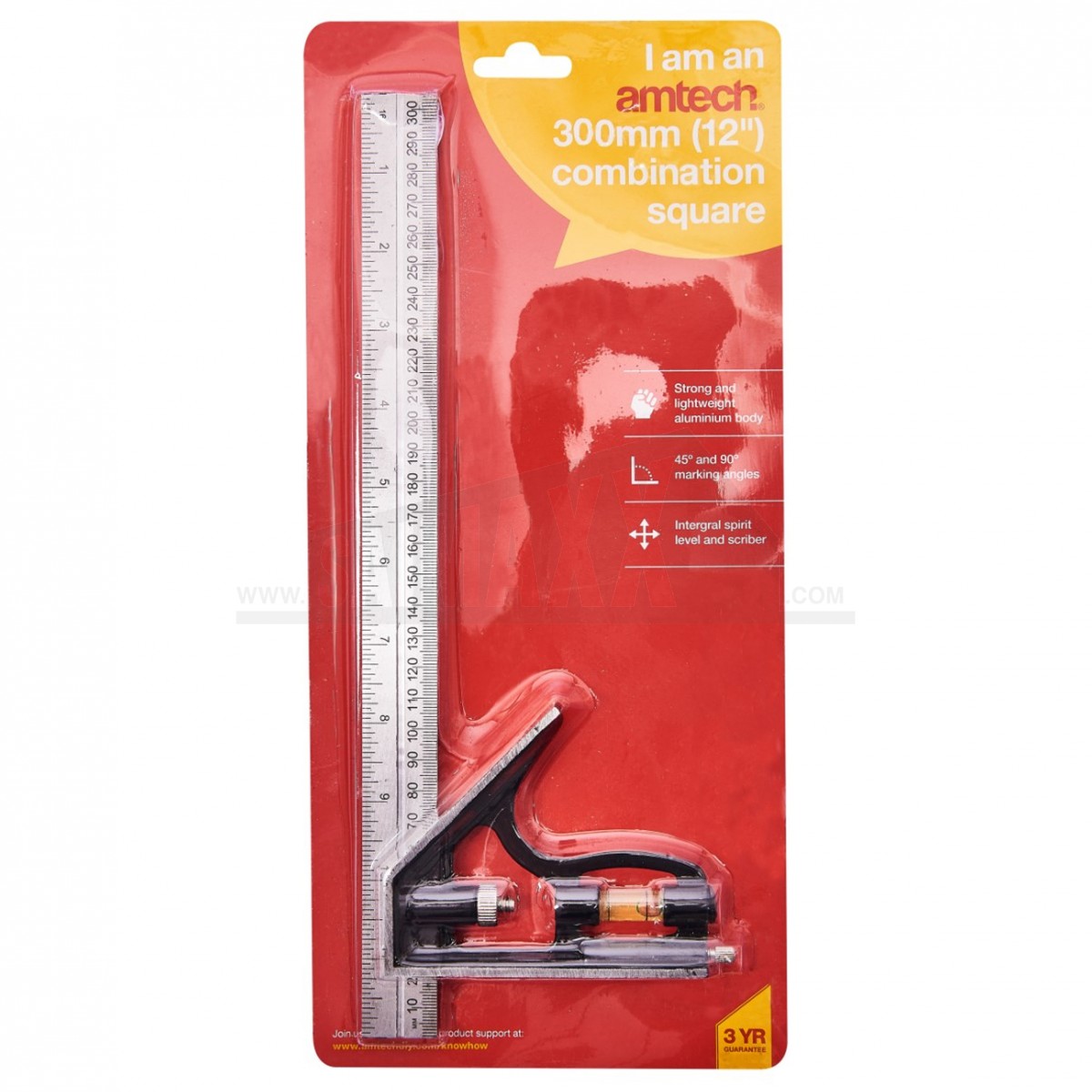 The Amtech 300mm (12in) Combination Square is a measuring and marking tool for checking 90 degree and 45 degree angles, depths and straight lines. It is used in woodworking, metalworking and layout tasks where accurate marking out is needed.