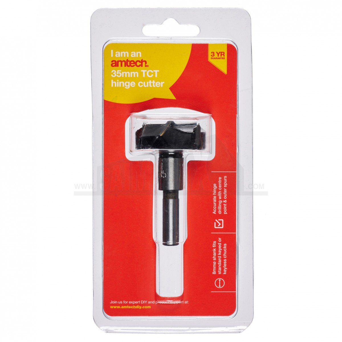 The Amtech TCT Hinge Cutter is a tool used to cut holes in doors for hinges