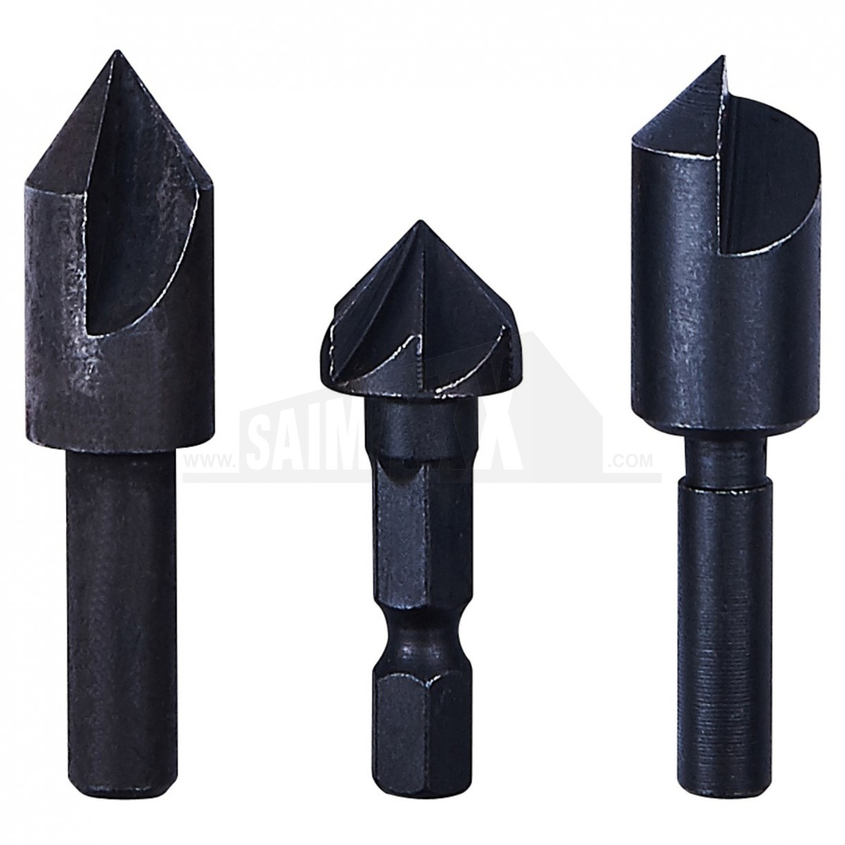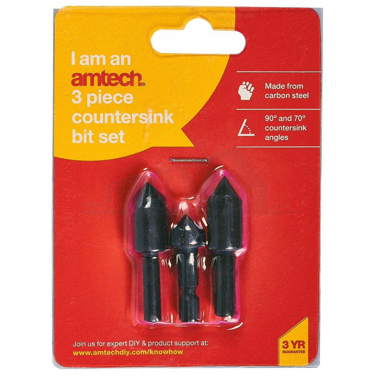 The Amtech 3pc Countersink Drill Bits are used to make conical holes into wood. They are suitable for use with hand or power drills