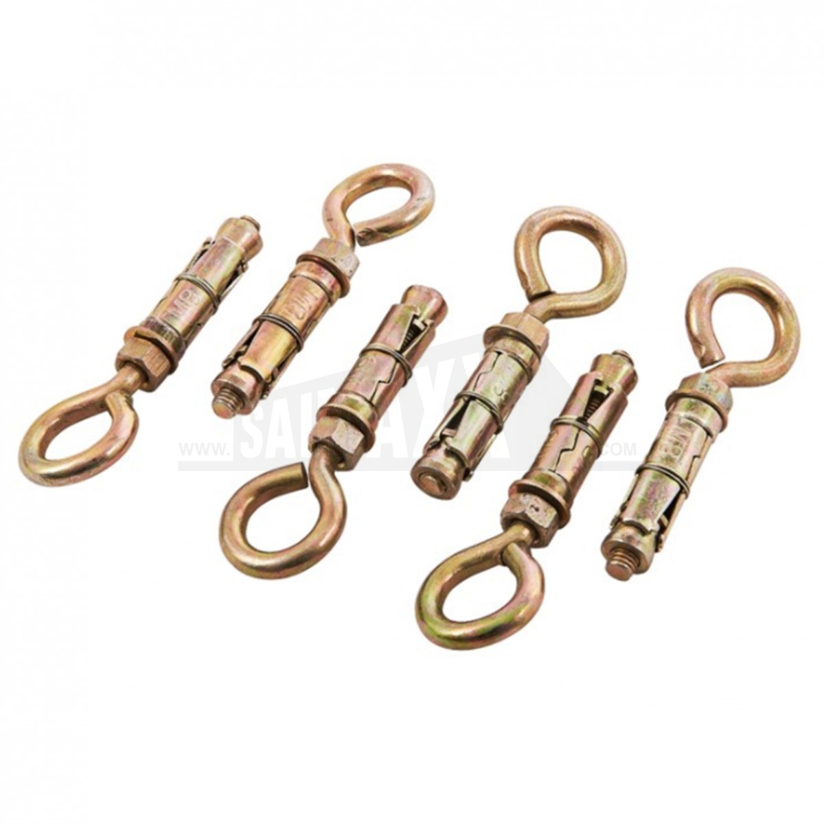 The Amtech 6pc 8mm Closed Hook Expansion Bolts are strong masonry anchors with a closed hook end for suspended fixings. They provide a secure hold in concrete or brick for heavier hooked attachments.