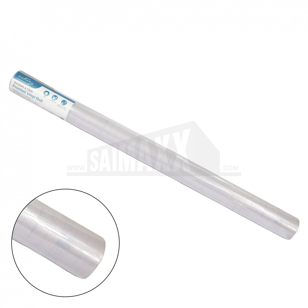 The Ashley Frosted Privacy Vinyl Roll is a self-adhesive window film measuring 44.5cm x 1.5m for obscuring glass while still allowing light through. It is suitable for adding privacy to internal windows and glazed doors in homes and commercial spaces.