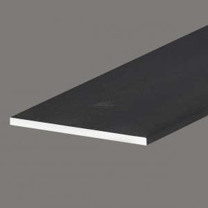 A black uPVC fascia and soffit joint external corner is made to create a tidy 135 degree external junction between boards. It gives a colour-matched finish around angled roofline corners.