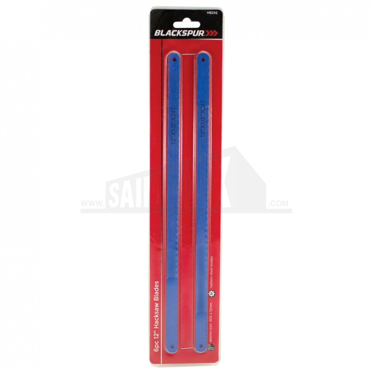 The Blackspur 12in 300mm Large Hacksaw Blades 6pc pack provides replacement blades for large hacksaws using the standard 12in size. They are suited to keeping saw frames ready for continued cutting of metal and other suitable materials.