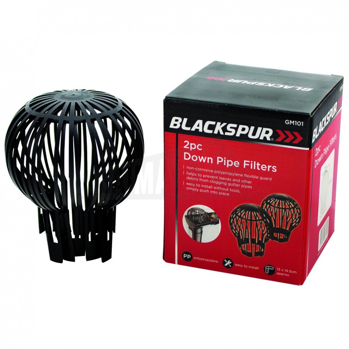 The Blackspur 2pc Down Pipe Filters are mesh inserts designed to fit into downpipes and help stop leaves and debris from blocking rainwater drainage. They help maintain water flow from gutters into the downpipe.