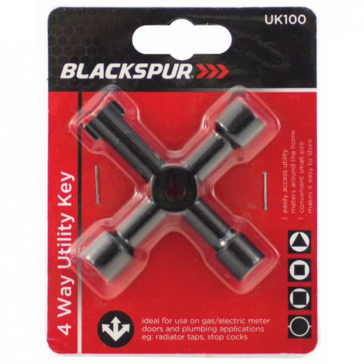 The Blackspur 4 Way Utility Key is a compact multi-purpose key for operating common service cabinet and meter box locks. It provides four key profiles in one tool for maintenance and access tasks.
