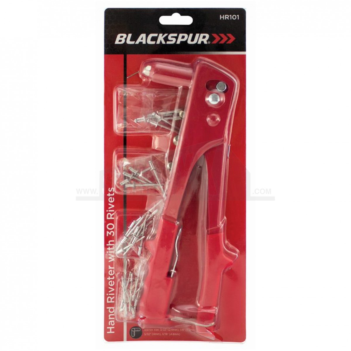 The Blackspur Hand Riveter with 30 Assorted Rivets is a manual fastening tool for setting rivets in sheet materials and light metal sections. It provides a simple way to create secure permanent fixings for repair and assembly work.