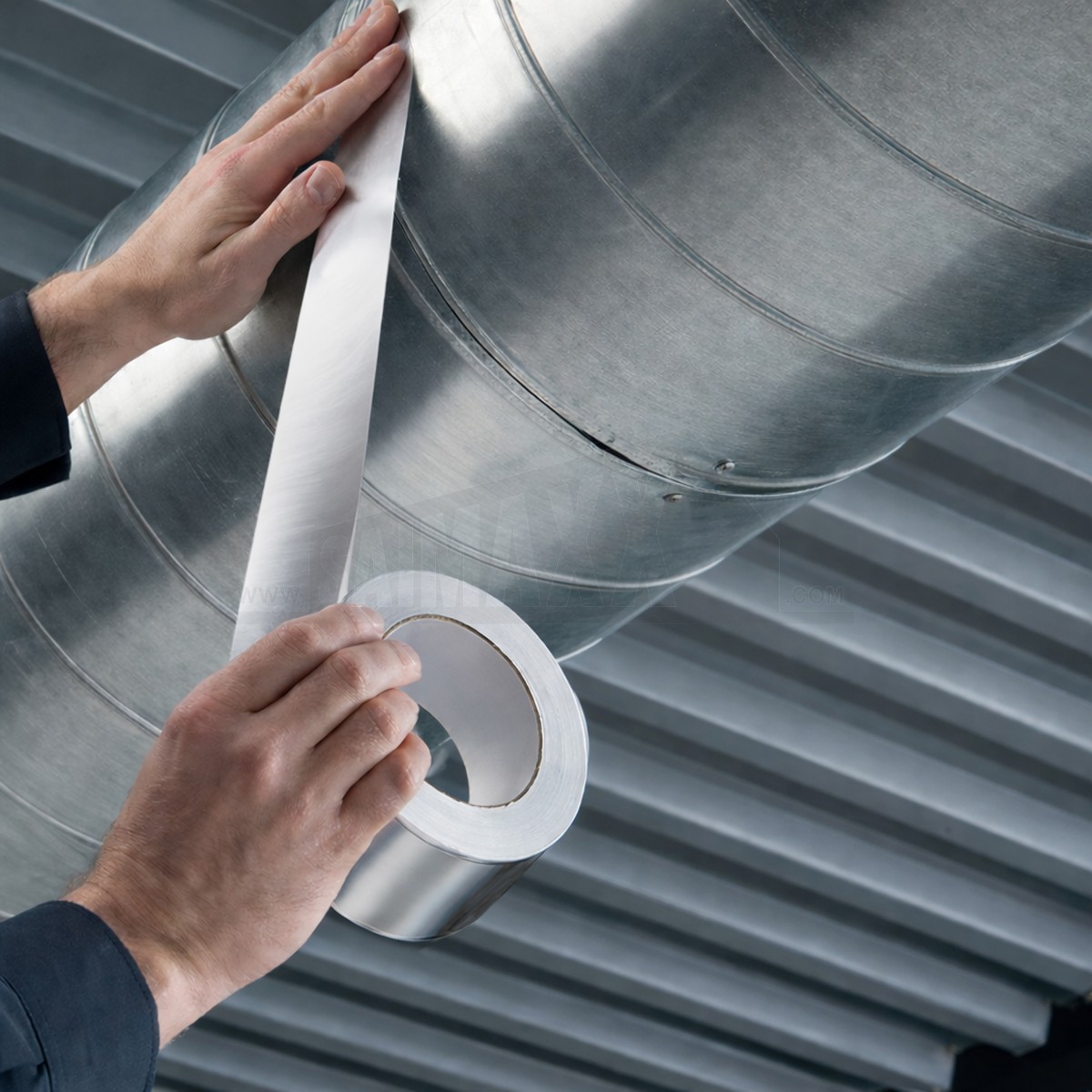 A self-adhesive, heat and light reflective tape suitable for use with duct systems on all types of ventilation and air conditioning systems.