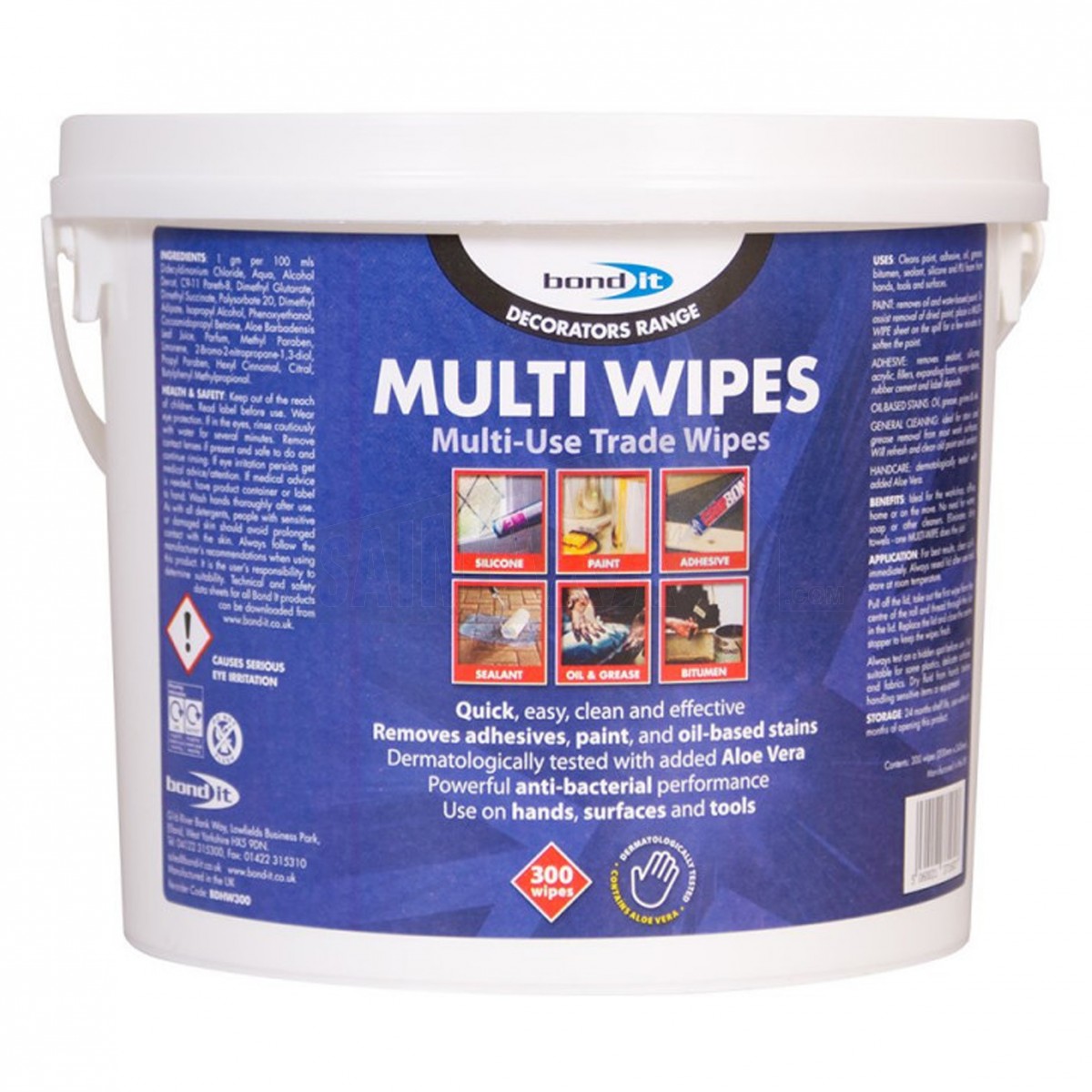 Multipurpose trade wipes for cleaning tools and surfaces. Suitable for cleaning uncured Polyurethane, paint and silicone. Also effective on adhesive, bitumen, grease and cleaning grime from all surfaces. Supplied in a handy resealable plastic tub.