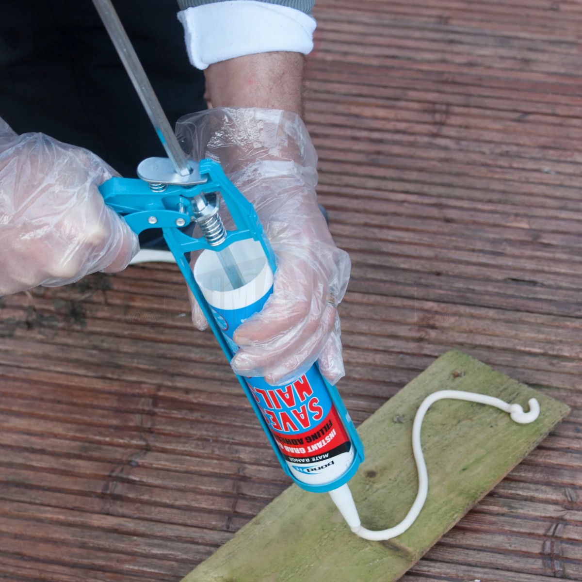 - Application Apply using a standard sealant gun with the nozzle cut at an angle of 45°, and to an opening slightly larger than the joint to be sealed. Apply a 6mm bead (or thicker to suit gap) in a zig zag along one length of the item to be fixed. Press into place and apply an even pressure on the entire surface, leave to cure for 48 hours. Temporary support or fixings are recommended on very heavy items whilst curing.