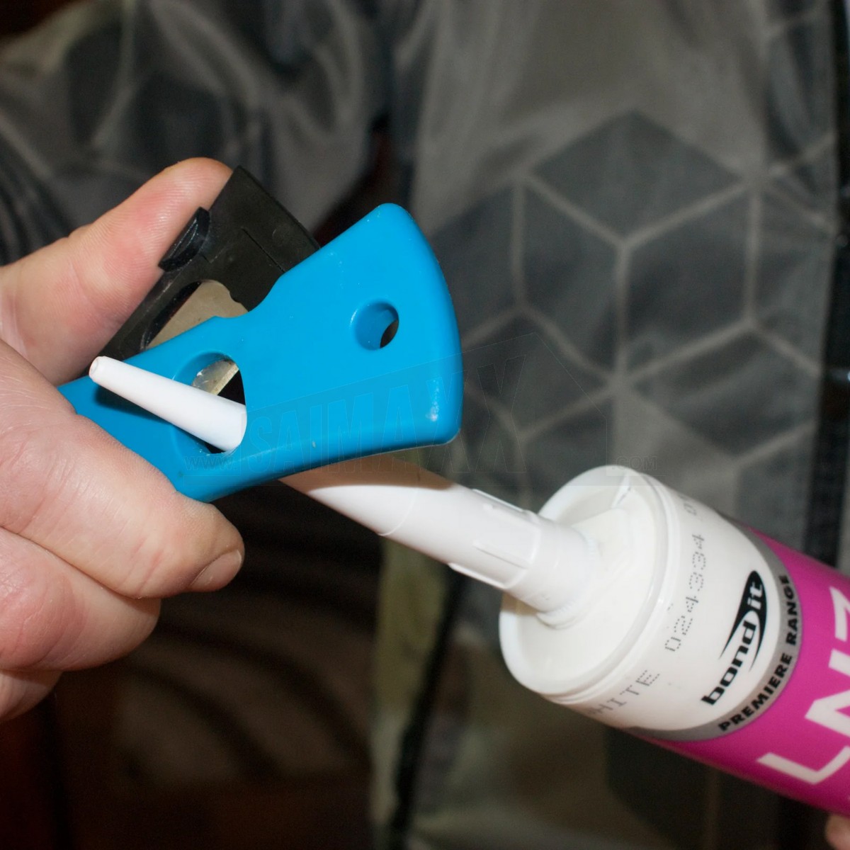 Handy and safe cartridge cutter. Cuts threads and nozzles in one easy action.