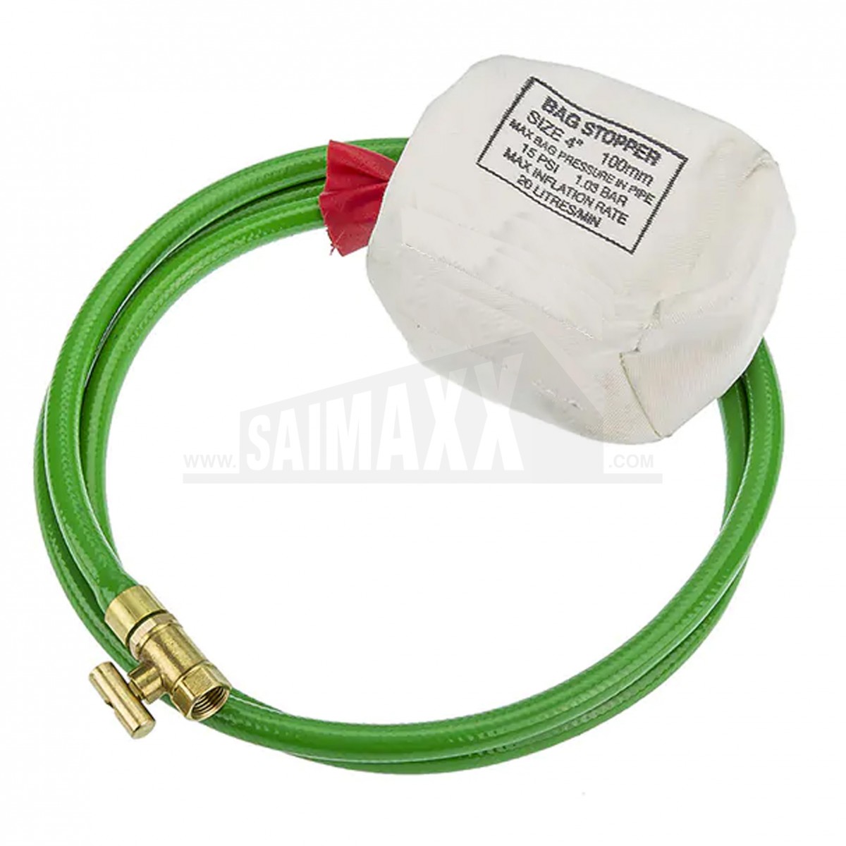 A Canvas Air Test Bag 4 inch with hose and 1/4 inch brass tap is designed for sealing drains and pipework during air testing. It inflates to form a temporary internal seal for checking system integrity.