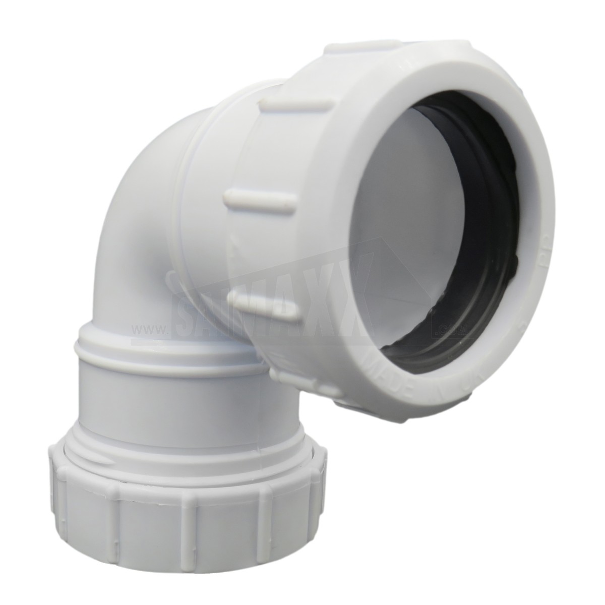 A Compression Waste White 40mm 1.5" 90 degree elbow bend is a white waste fitting for making a right-angle turn in 40mm waste pipe. It provides a compression connection for sink and appliance waste layouts.