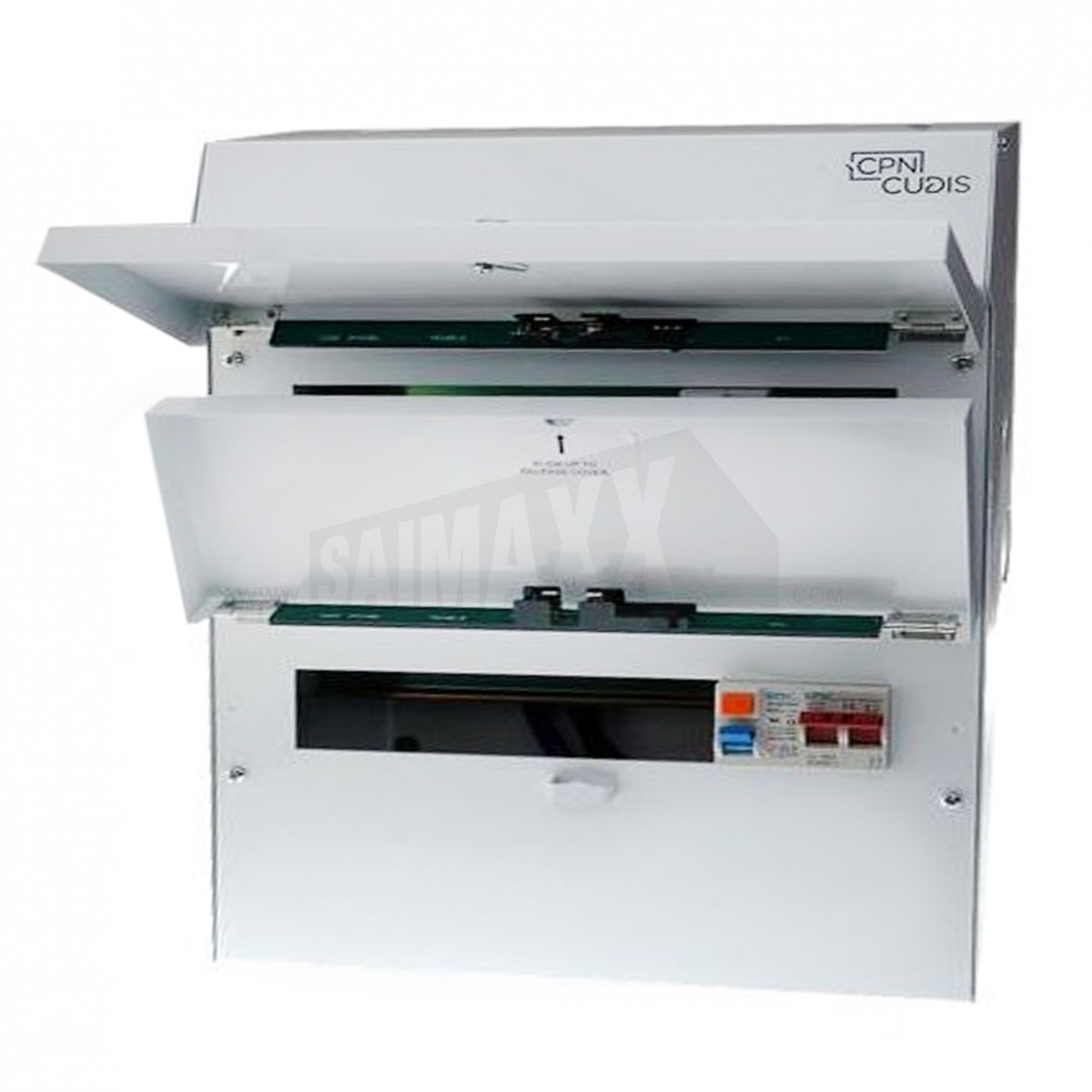 The CPN Lumo Metal 22 Useable Way Double Stacked Consumer Unit 2x80A RCDs is a metal distribution board with 22 usable ways in a double stacked layout. It provides split-load circuit protection for domestic electrical installations using two 80A RCDs.