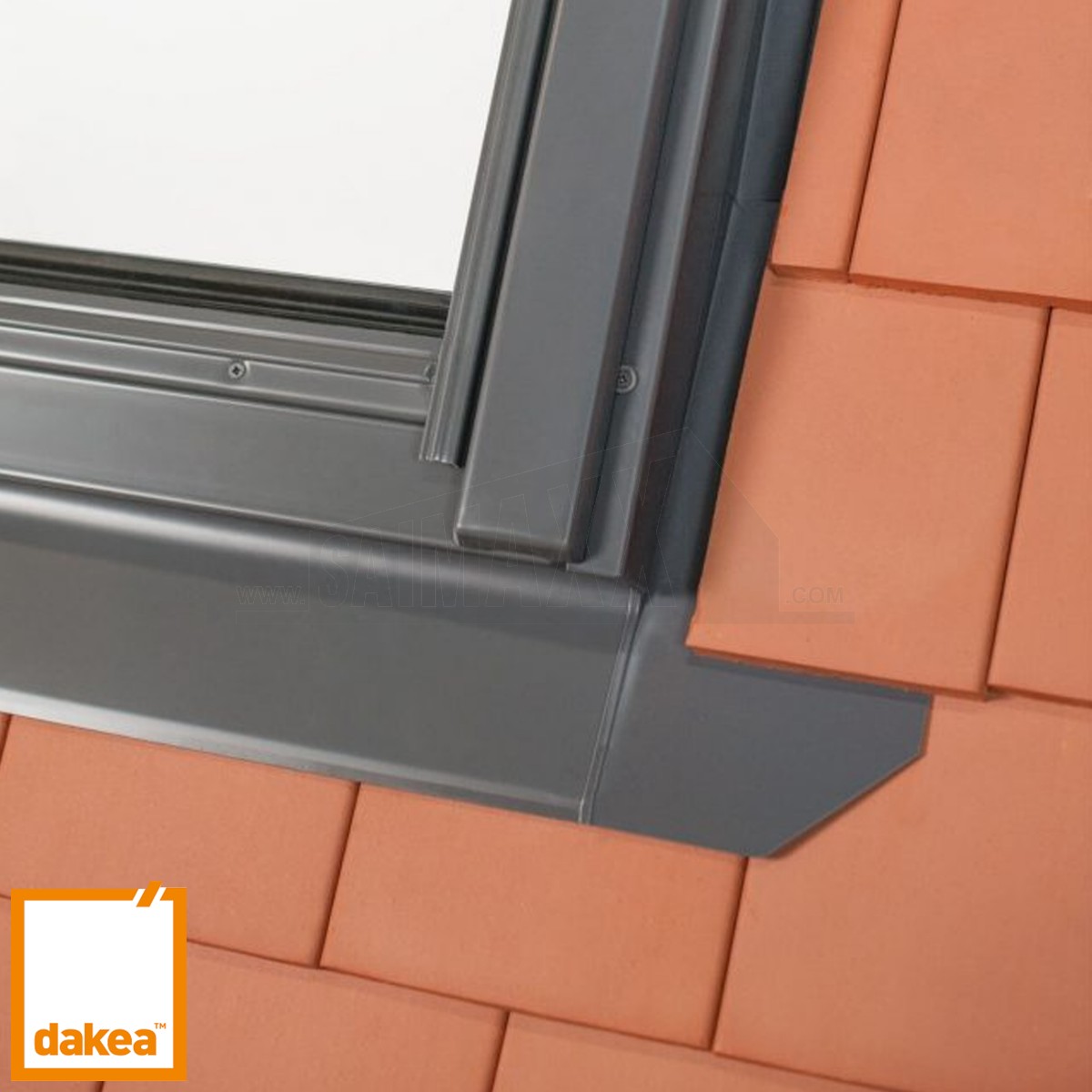 The Dakea Slate Roof Tile Flashing 55 x 78cm is made for weatherproof roof window installation on slate roof coverings up to 8mm thick. It forms a neat seal around the window and helps shed water onto the surrounding roof surface.