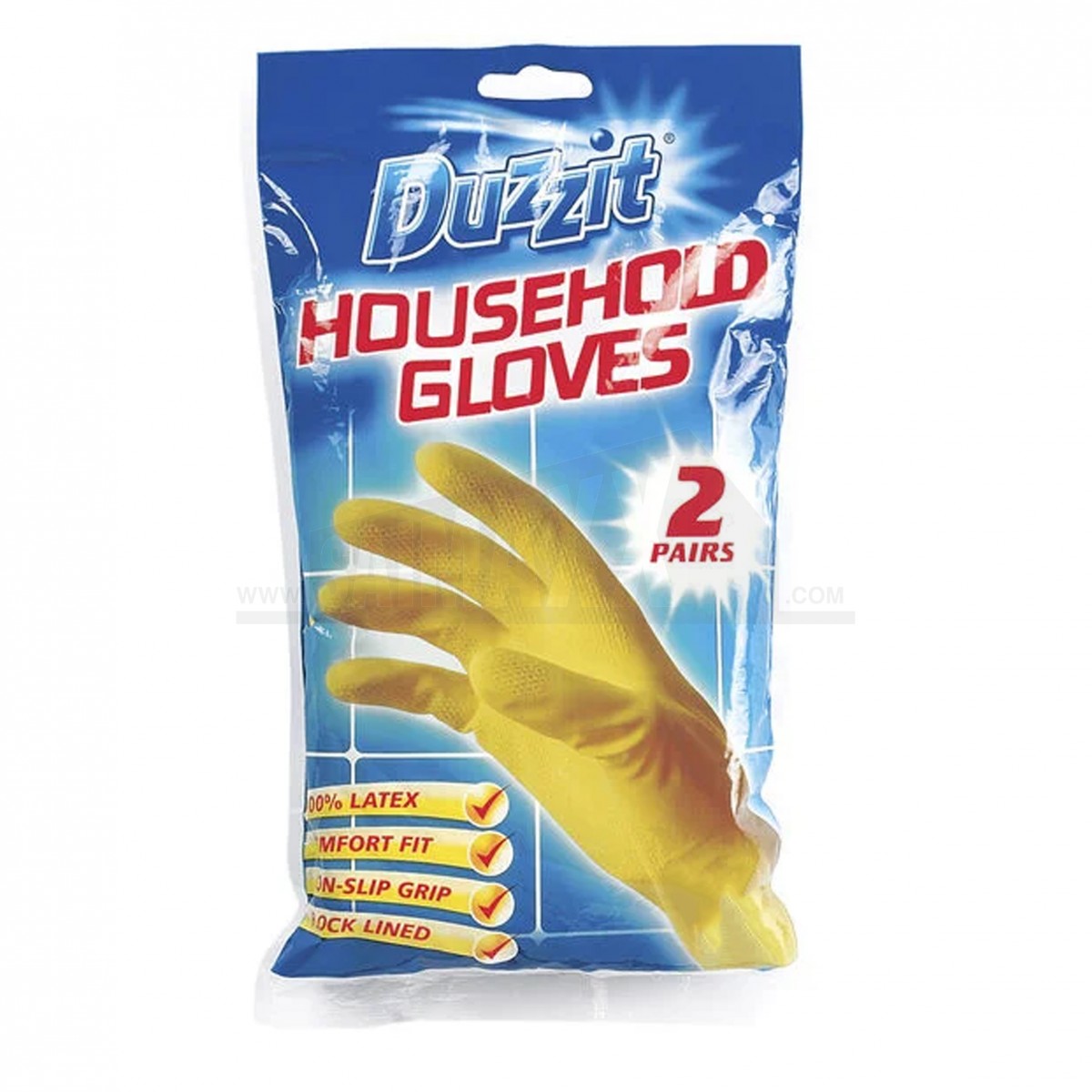 The Duzzit Elbow Grease Household Rubber Gloves 2 Pair Pack in large size provides hand protection for everyday cleaning and washing up tasks. They offer a durable rubber barrier against water, detergents and household dirt.