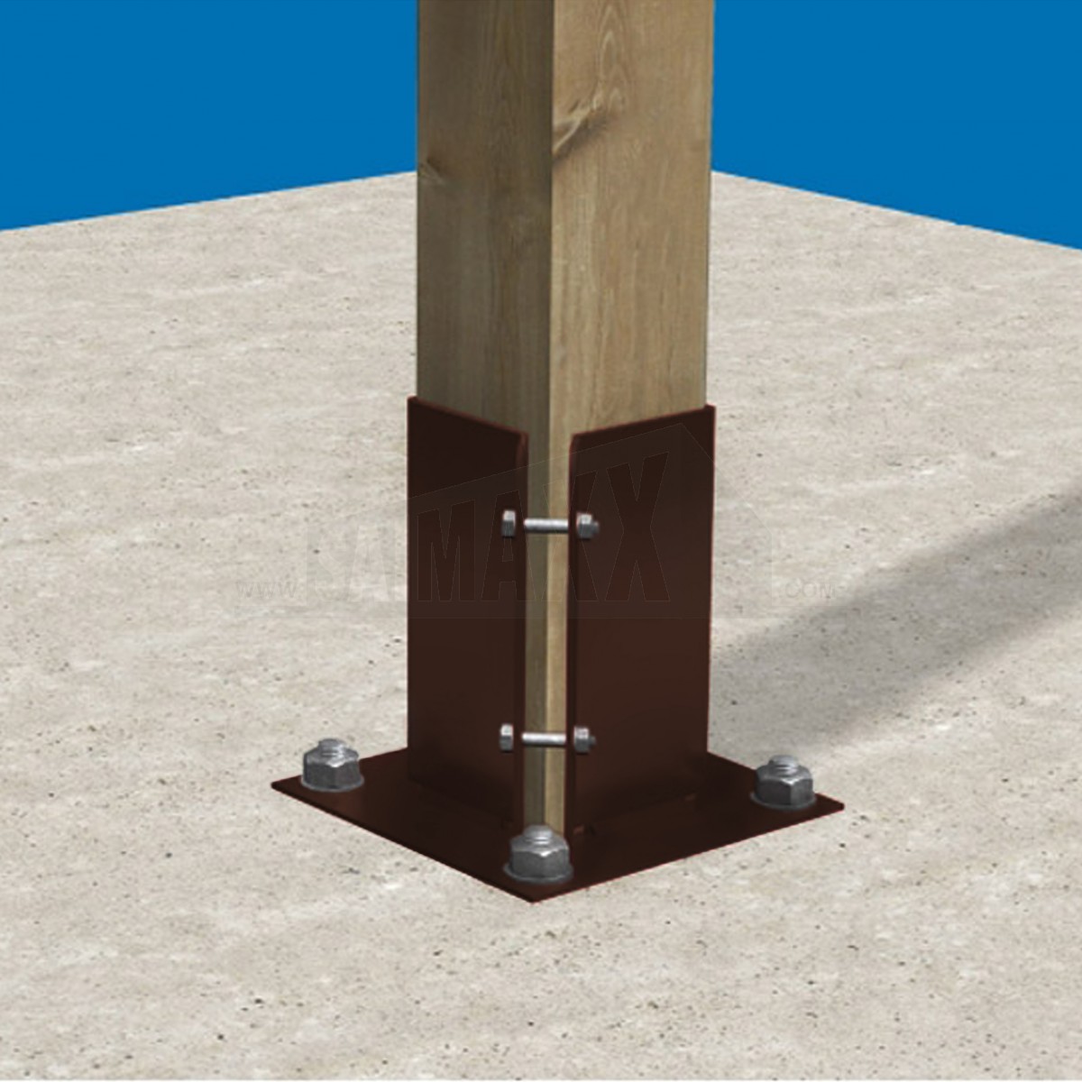 The EasyPost Bolt-Down Support 100mm x 100mm is a steel post support designed to secure timber posts to hard surfaces. It provides a stable bolt-down fixing for fencing, decking and other outdoor timber structures.