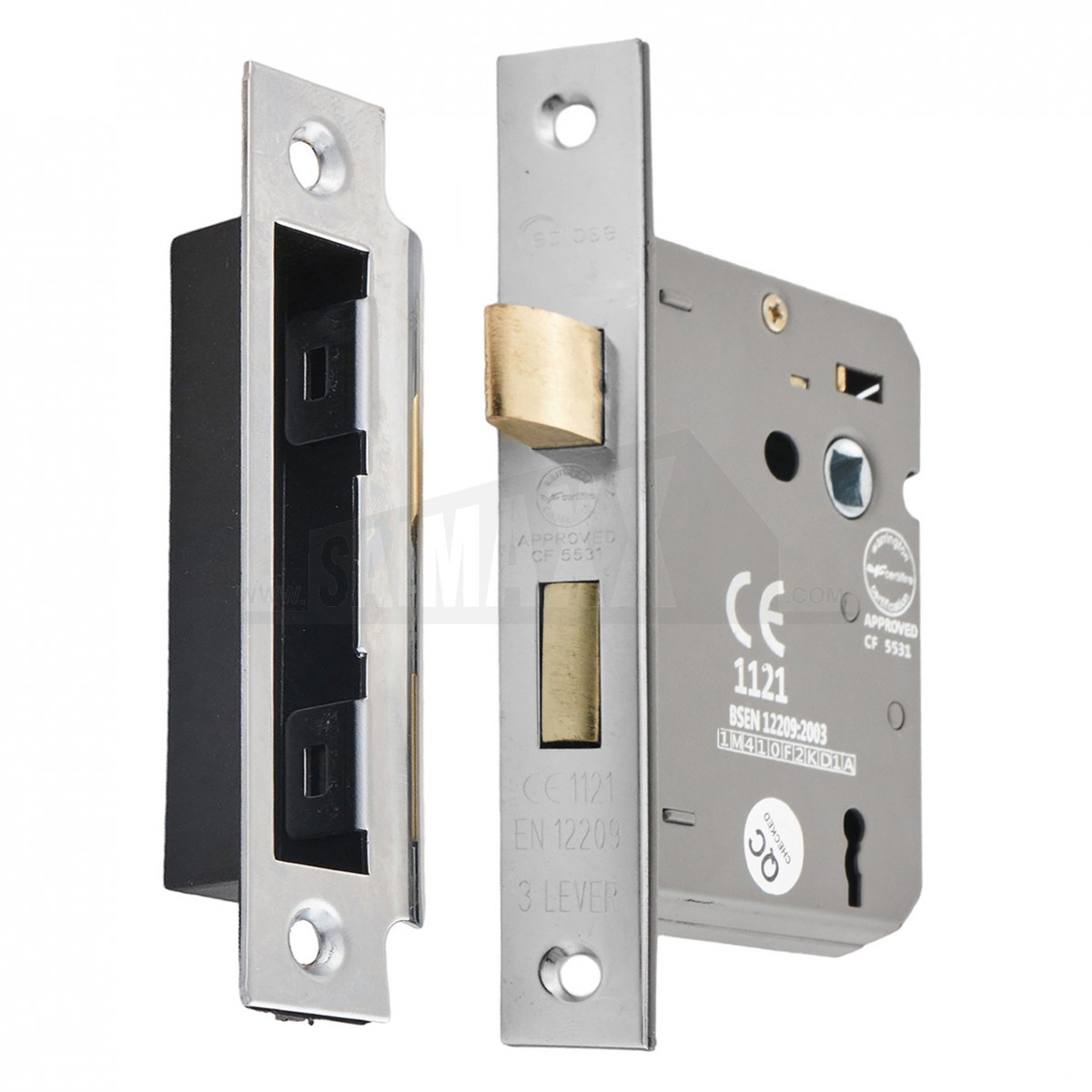 The Eclipse 75mm (3") 3 Lever Reversible Keyed Sashlock in a nickel-plated chromed finish is a mortice lock for internal timber doors requiring key operation. It has a reversible latch for left or right hand fitting and combines latch and deadbolt security in one case.