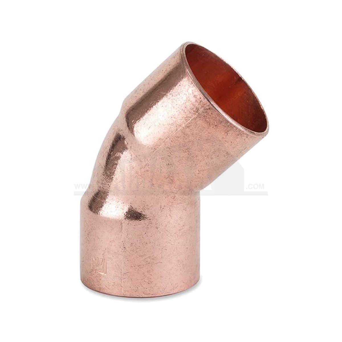 An Endfeed Copper 45 degree Elbow 28mm is a copper capillary fitting for making a 45 degree change in direction on 28mm pipework. It is suited to larger plumbing and heating lines where a swept directional change is needed.