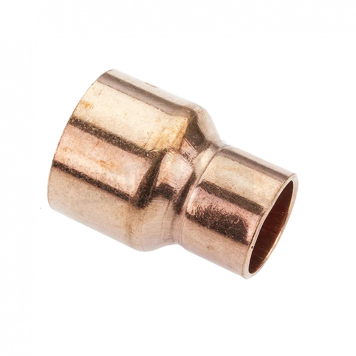 An Endfeed Copper external Reducing Coupling 22 x 15mm is a copper capillary fitting for joining 22mm pipe to 15mm pipe with an external reduction. It is used in soldered plumbing and heating systems where a stepped change in pipe size is required.