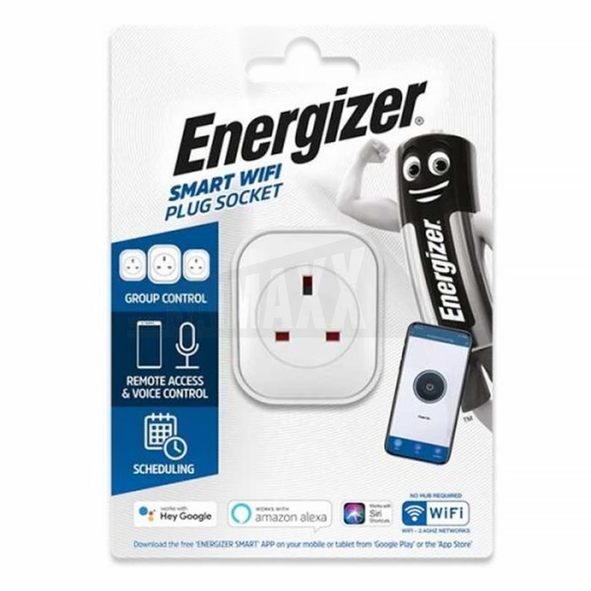 The Energizer Smart Wi-Fi Plug Socket is a wireless controlled plug-in adaptor for managing powered appliances from a smart device. It lets you switch compatible electrical items remotely through a Wi-Fi connected setup.