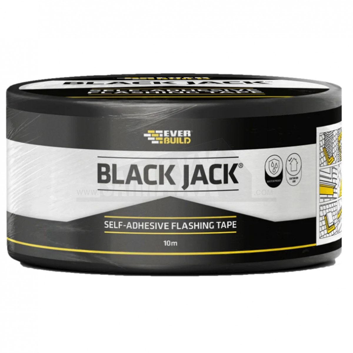 Everbuild Black Jack Flashing Tape is a strong self-adhesive flashing tape comprising of an aluminium foil and a bitumen rubber adhesive. The adhesive forms a strong waterproof seal simply by pressing the tape into place by hand.