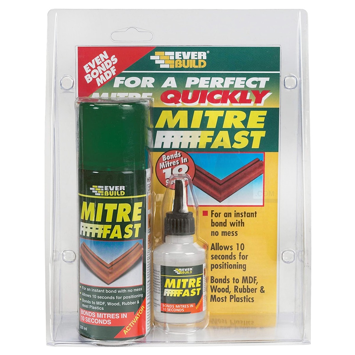- Flash setting formulation - bonds most surfaces within 10 seconds, cutting down mitre assembly bonding times when compared to conventional wood adhesives