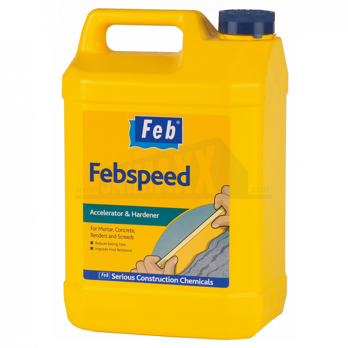 Febspeed is a liquid admixture formulated to accelerate the setting time of cement based mortar, non-reinforced concrete, renders and screeds. Also provides frost protection in the wet mortar during the setting period; even in sub-zero temperature and can also be used neat with cement as a plugging aid. Tested to the requirements of EN 934-3: 2009.