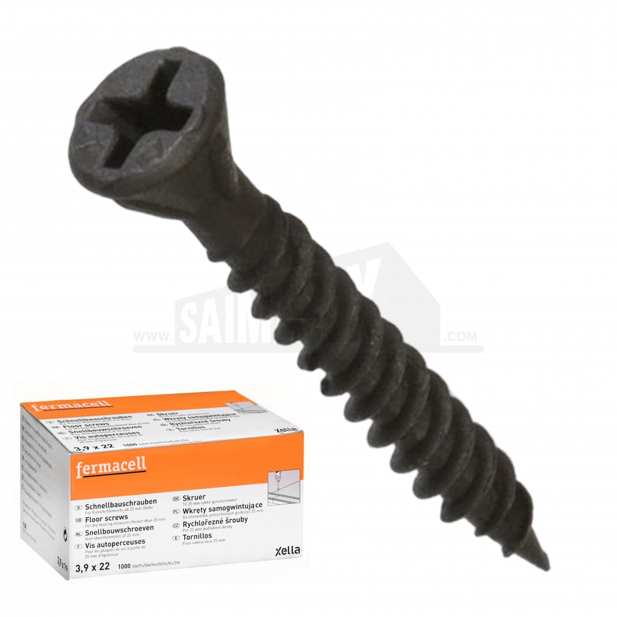 The Fermacell Screws 22mm x 3.9 x 1000pc Flooring Screws are designed for fixing flooring boards securely with a consistent countersunk finish. They are supplied in a 1000-piece pack for larger flooring jobs.