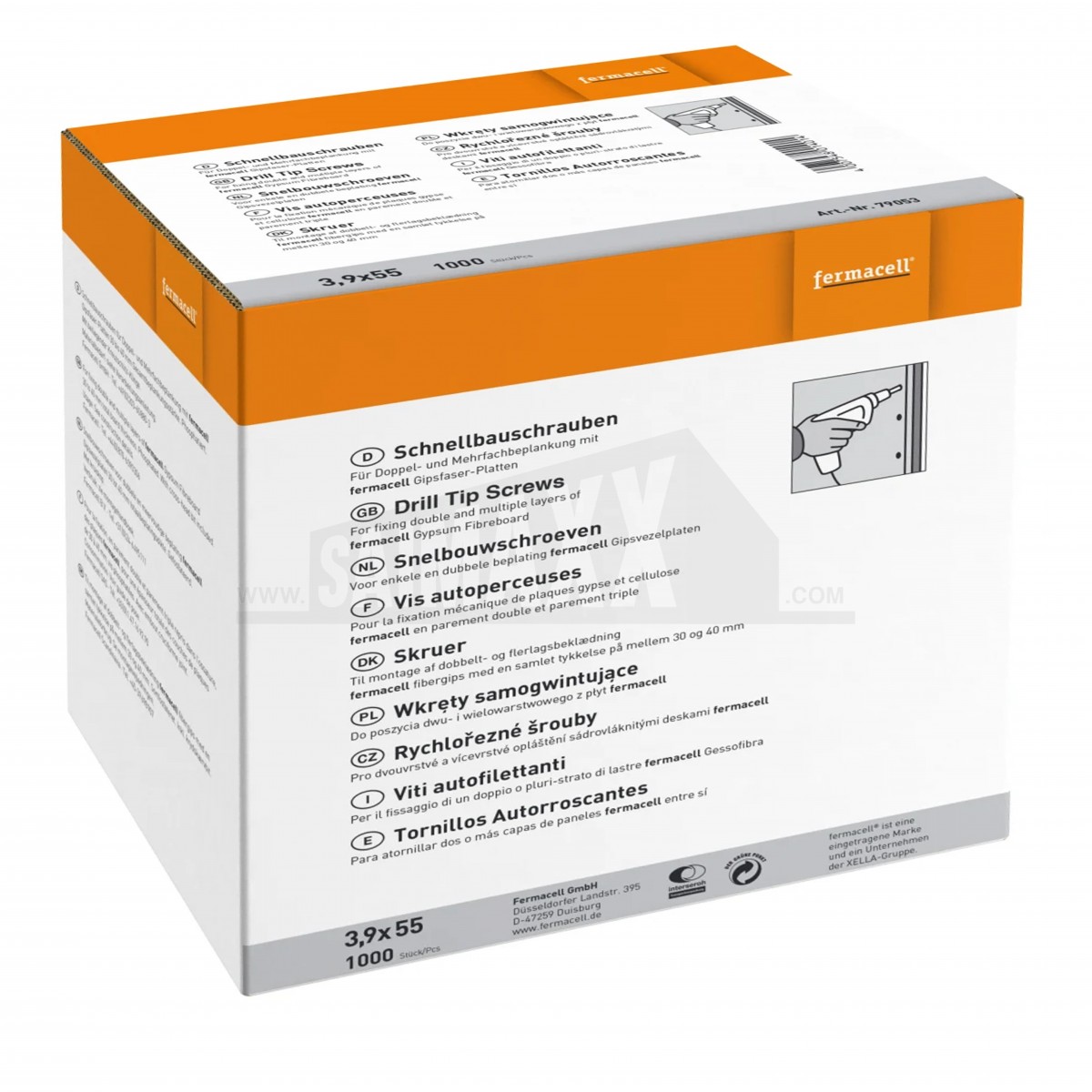 - 13 screws per m2 for walls (for each side)