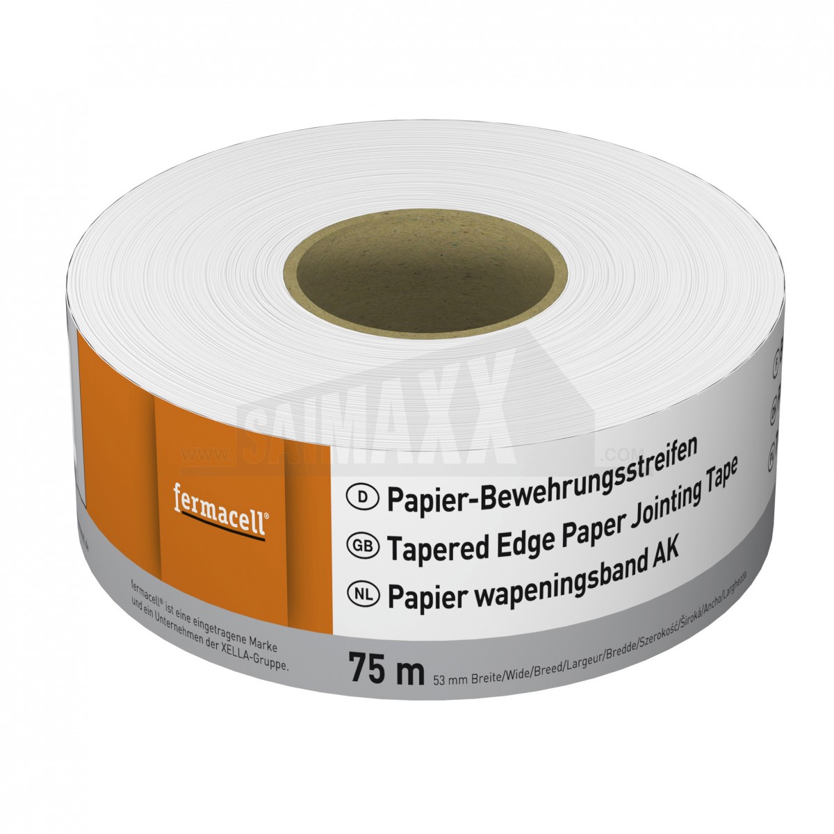 The Fermacell Tapered Paper Jointing Tape is a 75m x 53mm roll for finishing tapered board joints in dry lining applications. It helps create a neat reinforced joint ready for filling and final decoration.