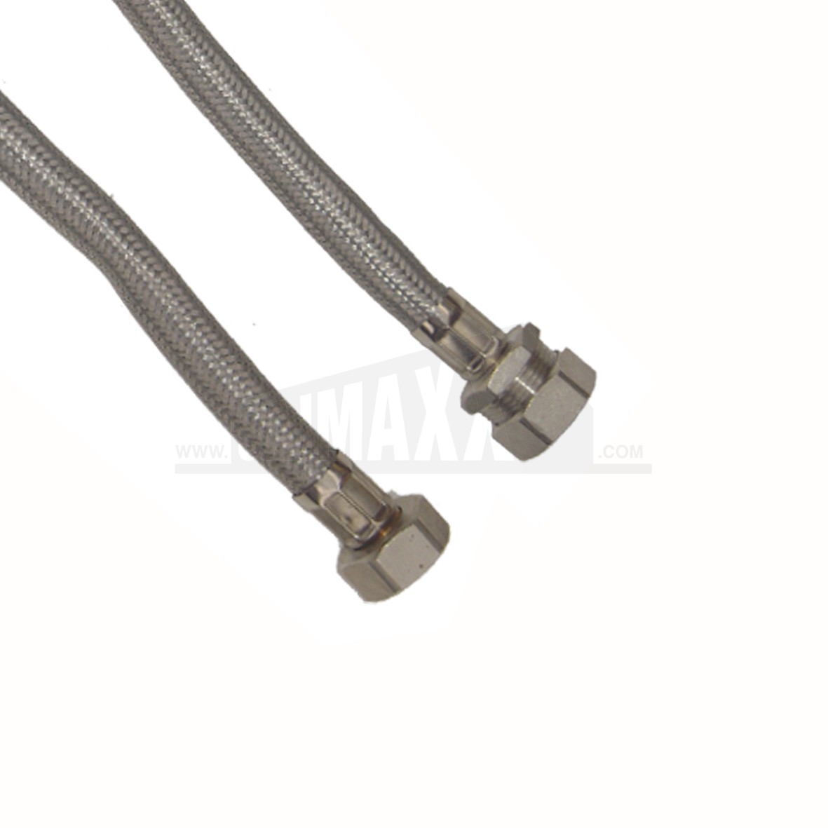 A Flexible Tap Connector Hose 15mm x 1/2" x 300mm Compression is a braided flexible connector for linking 15mm pipework to a 1/2 inch tap thread over a 300mm length. It provides a quick, neat connection where slight misalignment or limited space makes rigid pipe difficult to use.