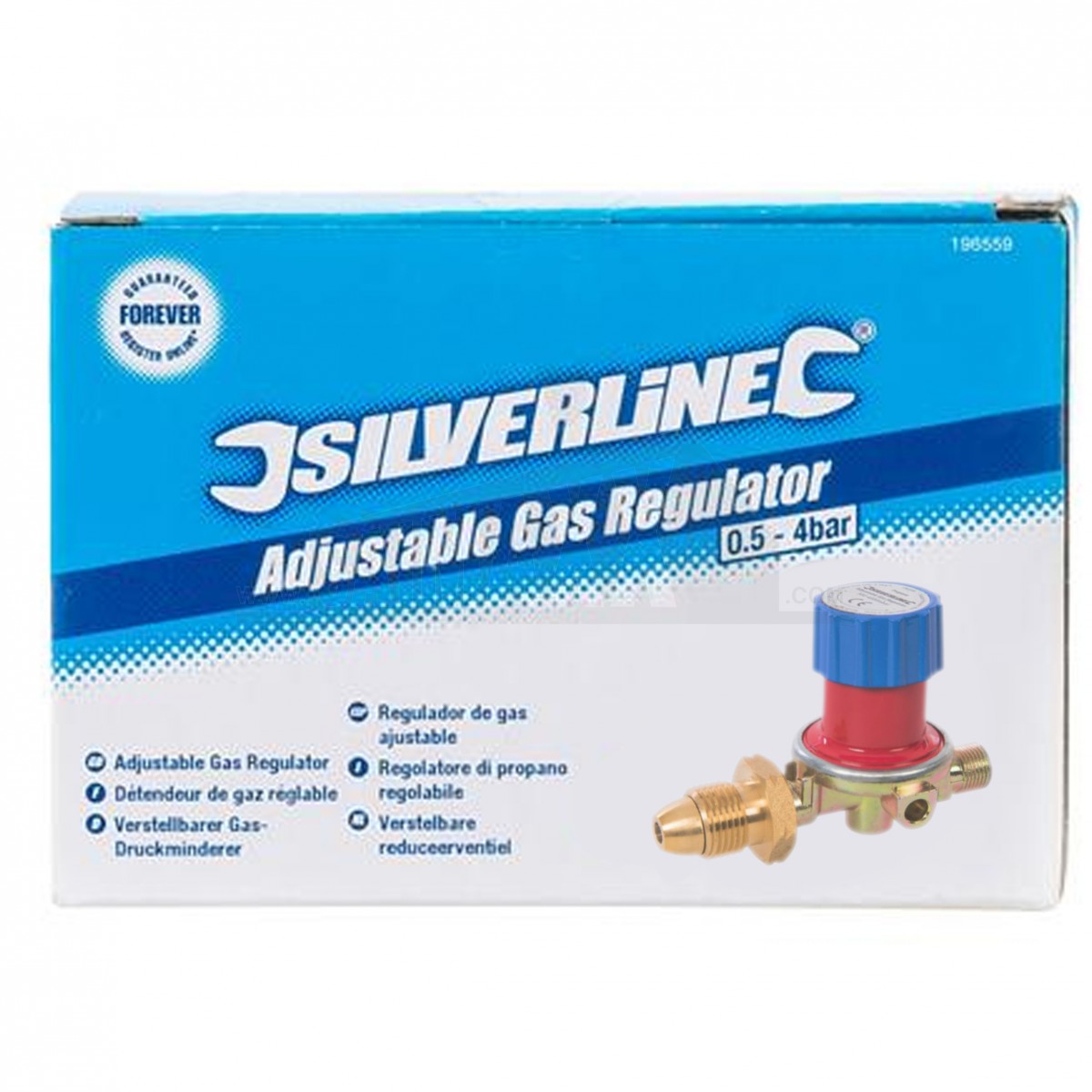 Attaches to propane gas tanks with 5/8” POL-type valve. G3/8”-19 LH, BSP male gas hose connector. Ideal for roofing burners, blowtorches, ring burners, boiling rings, commercial BBQs, gas space heaters and many other gas appliances with variable gas pressures. Operating pressure range 500 - 4000mbar. Max flow rate 8kg/h. Use with Silverline Gas Bottle Spanner (753123) or other 30mm AF spanner.