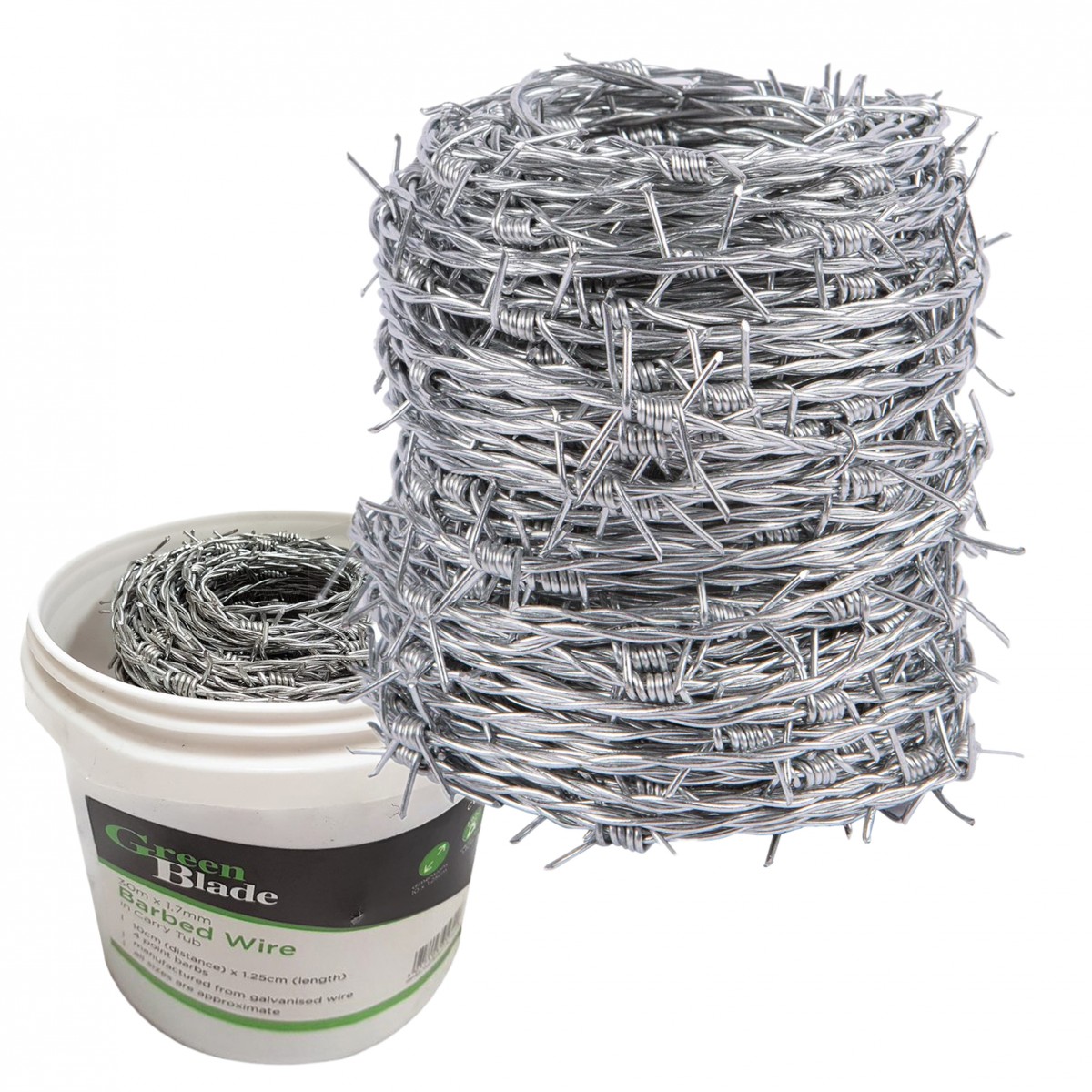 The Green Blade 30m x 1.7mm Barbed Wire in Carry Tub is a compact roll of galvanised barbed wire for fencing and boundary security. It comes in a carry tub for easier handling, storage and transport on site.