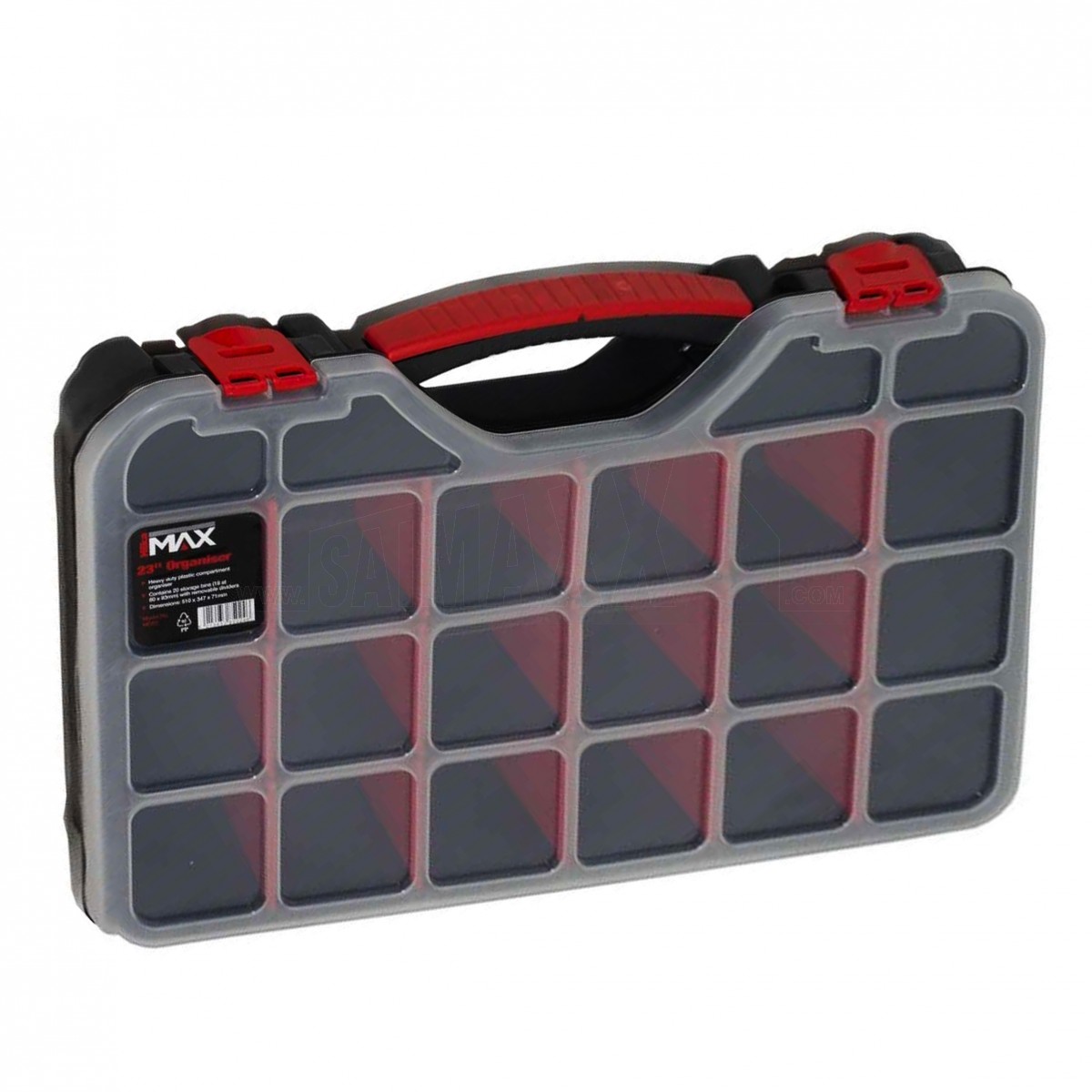 The Hilka Max 23" Plastic Organiser Tray with 20 Compartments is a large compartmented storage case for keeping small parts sorted and easy to find. It helps organise fixings, fittings and accessories on site, in vans or in the workshop.