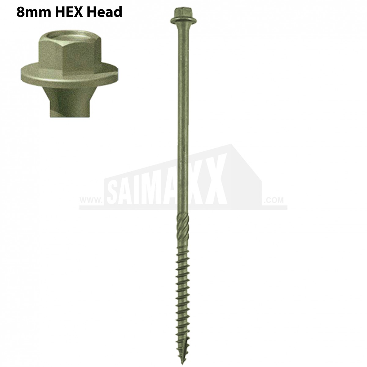 - 8mm hex head countersunk with a fixed washer.
