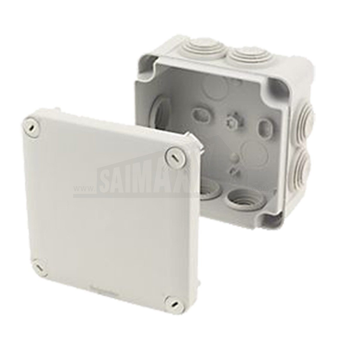An IP55 square grey junction box measuring 105 x 105 x 55mm is designed to protect electrical connections where a higher level of dust and water resistance is needed. It comes complete with knockouts for cable entry on surface-mounted installations.