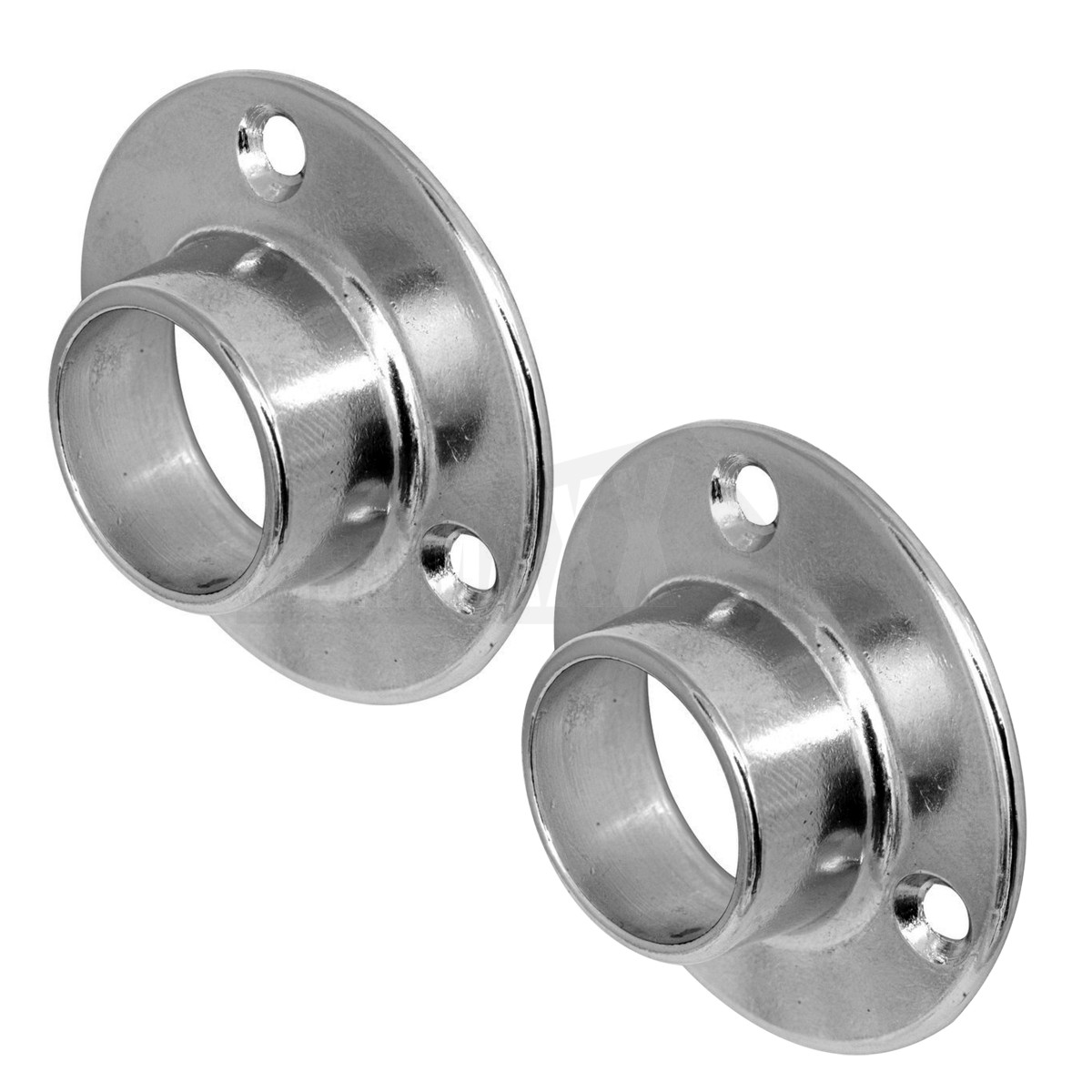 The Jedo 19mm polished chrome wardrobe tube end sockets are designed to support a 19mm wardrobe rail neatly inside cabinets and fitted storage. They provide a clean, durable mounting point and are supplied as a 2-piece set.
