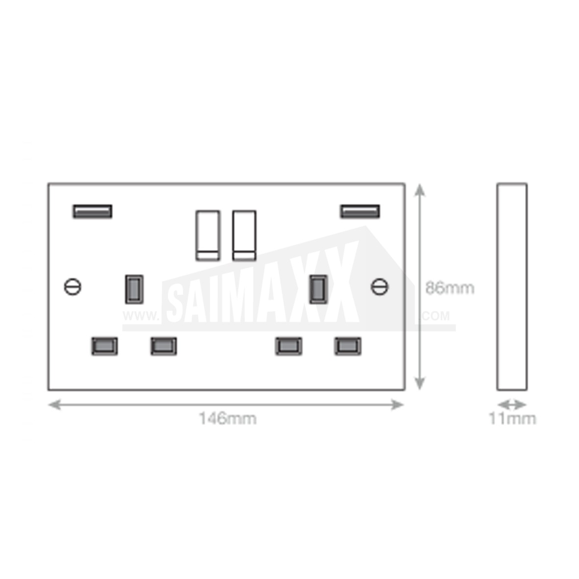 - 2 gang switched socket