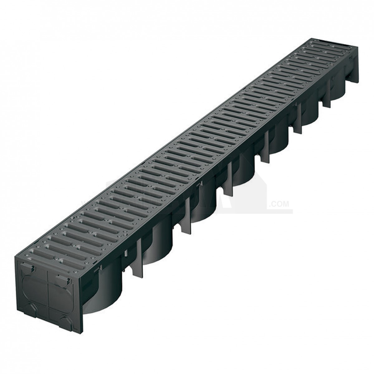 When digging the trench in which to place the channel, it is important that the correct fall is integrated. A fall of 1 in 40 (25mm in 1m) will guide the water to the outlet at a substantial rate to avoid puddling and debris sticking. To fit the outlet pipe straight to an elbow or other junction, first cut a small section of 4” pipe approximately 100mm long and use that to sleeve between the channel outlet and the junction.